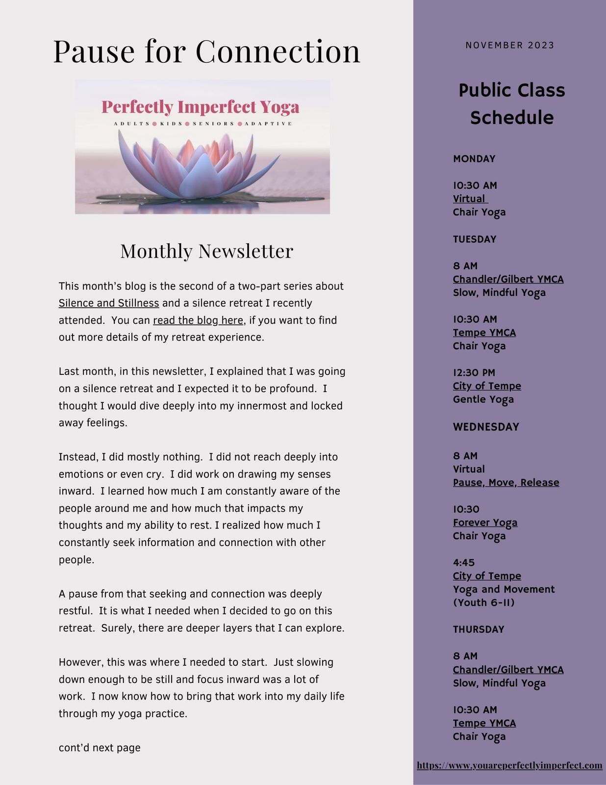 Perfectly Imperfect Yoga November Newsletter